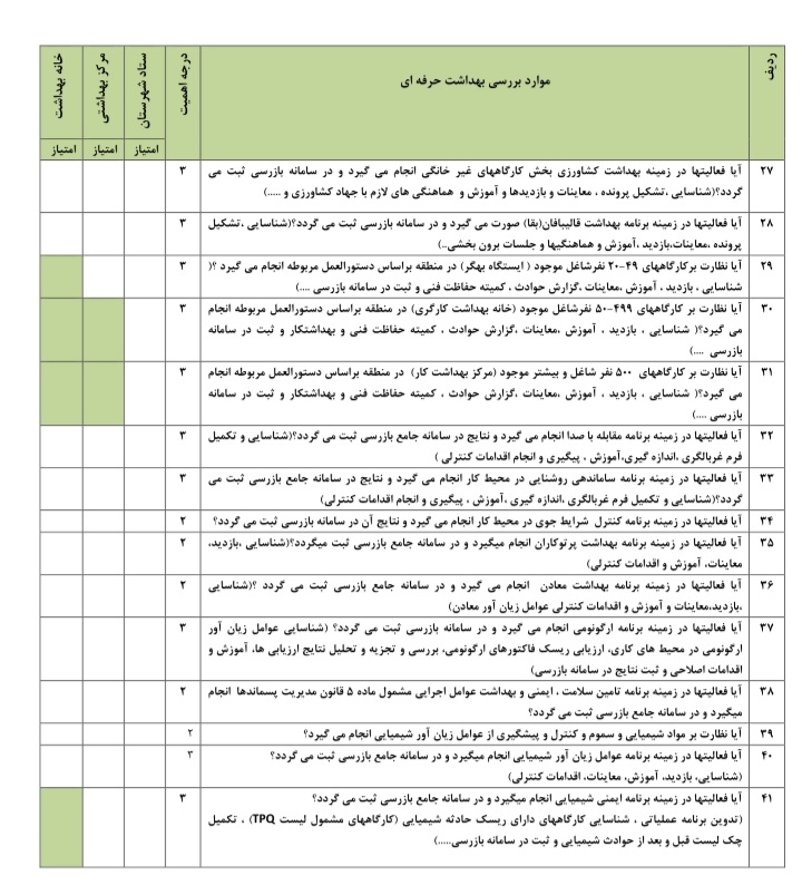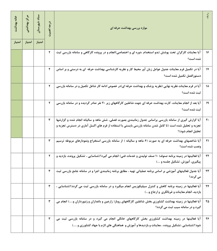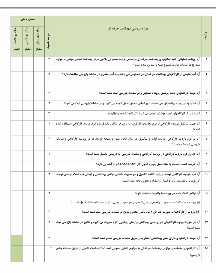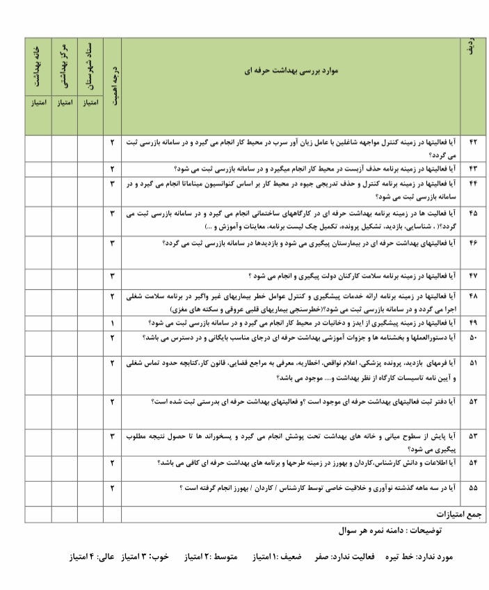 _ نکته ابتدایی : جهت تکمیل یک پرونده بهداشت حرفه ای در خانه بهداشت معمولا باید موارد زیل قرار گیرد :