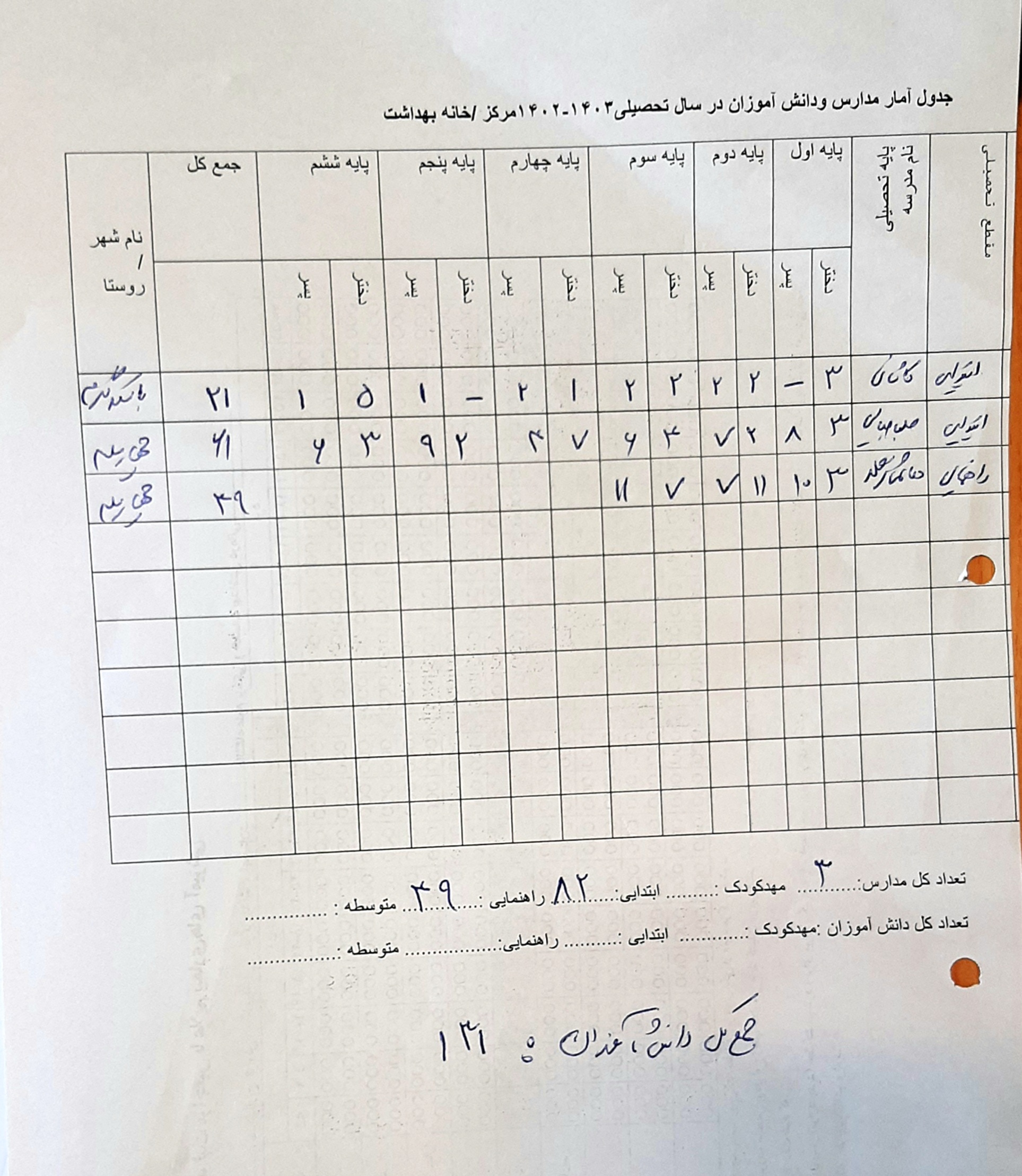 ۱_قرار دادن جدول آمار دانش آموزان مدارس :