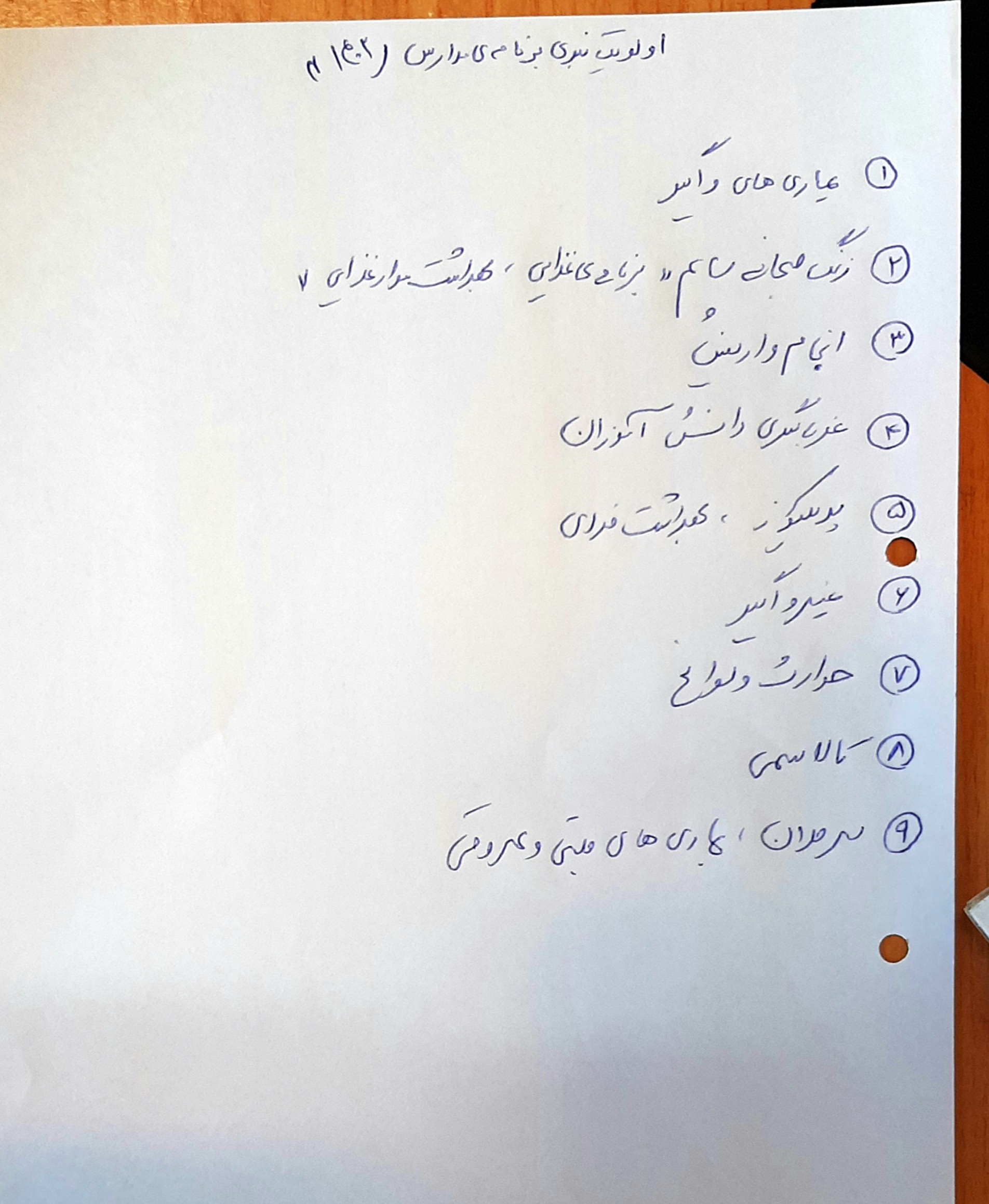 ۲_نوشتن برگه دستی ( اولویت بندی مدارس ) : براساس عکس اولویتها نوشته شود :