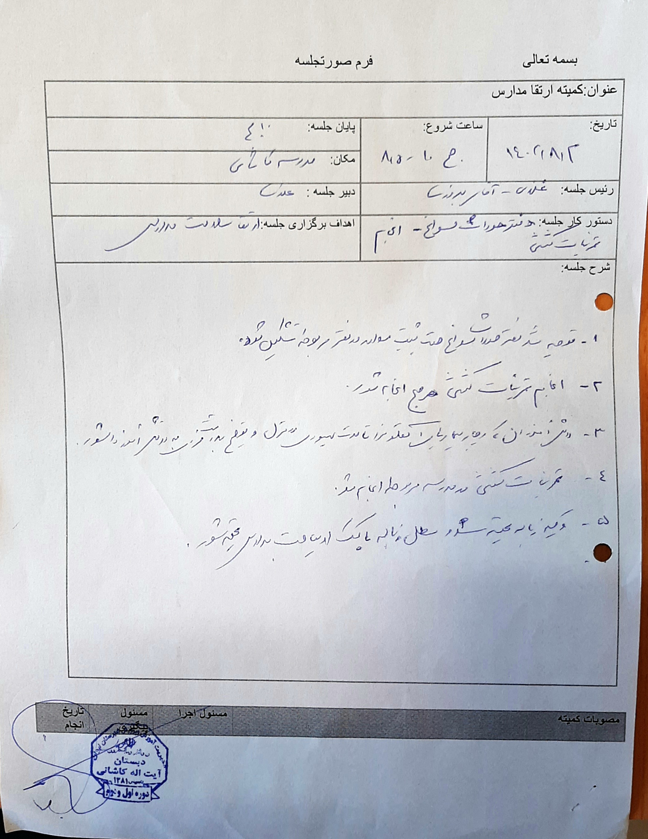 ۴_ قرار دادن فرم و ( صورتجلسه ) کمیته ارتقائ مدارس :