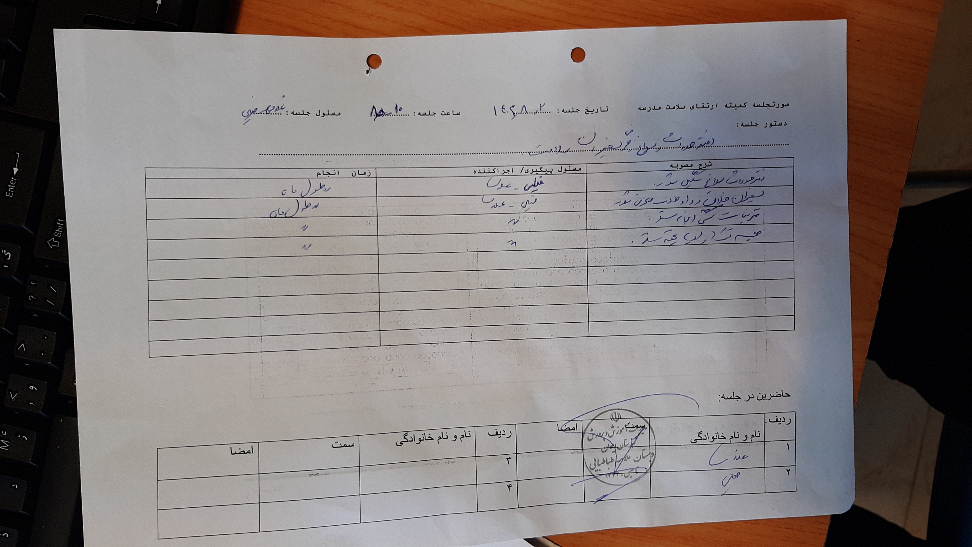 ب : به تعداد مدارس فرم و صورتجلسه کمیته ارتقا سلامت نوشته شود و همچنین برای هر شیفت مجزا یک صورت جلسه لازم است .