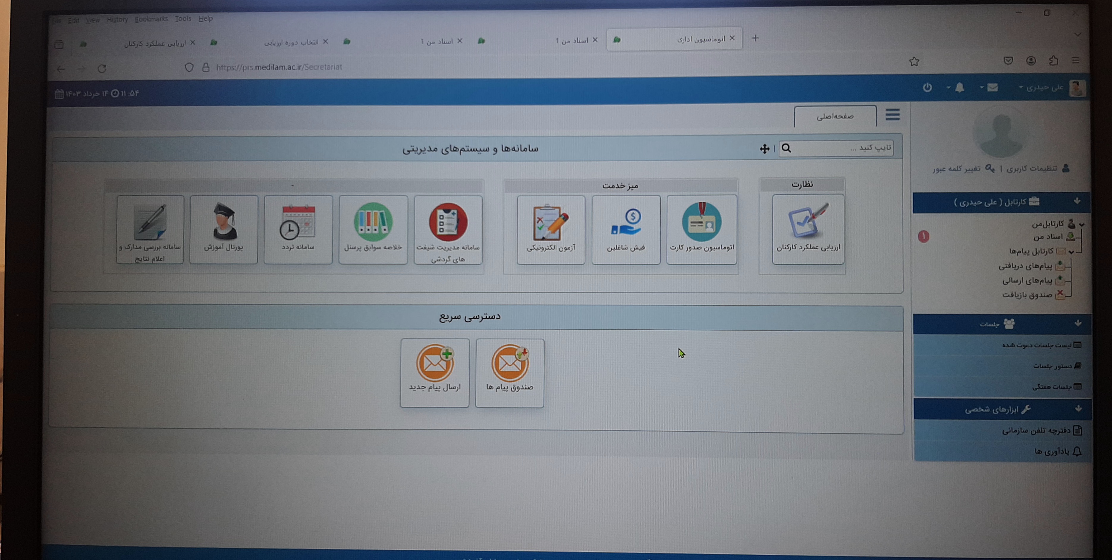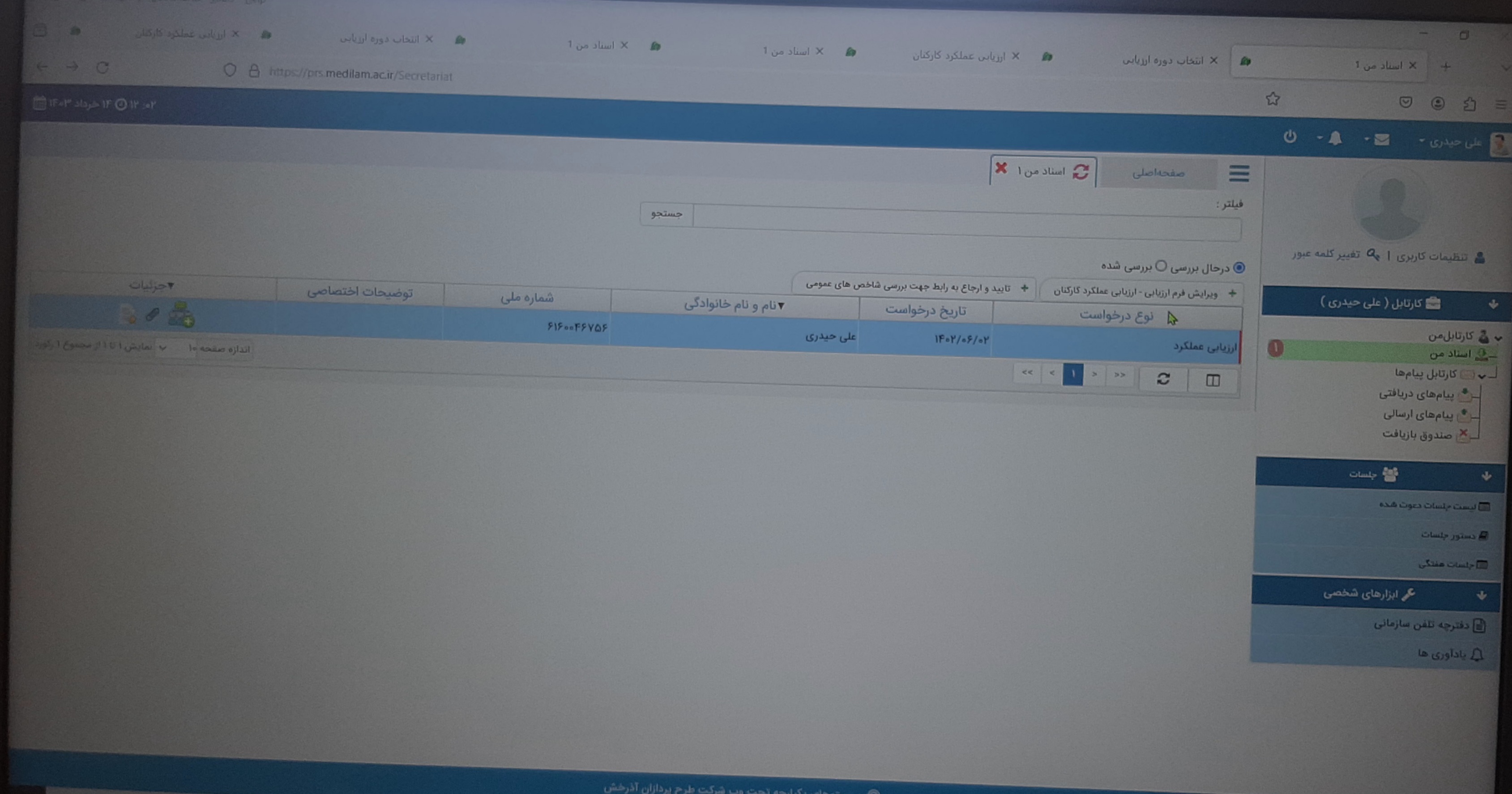 ✅ به صفحه ابتدایی کارتابل وارد شده و سپس به قسمت ارزیابی عملکرد کارکنان وارد شوید: