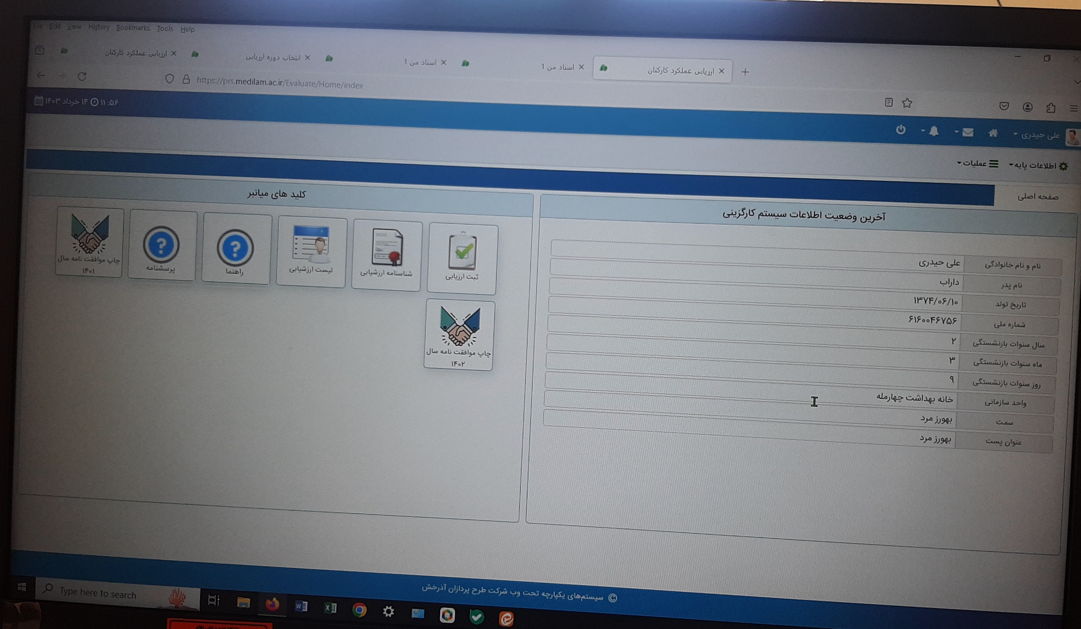 ✅ سپس در قسمت اسناد من روی ارزیابی عملکرد کلیک کنید در قسمت بالایی آن ۲ ایتم ظاهر میشود (مطابق عکس زیر)