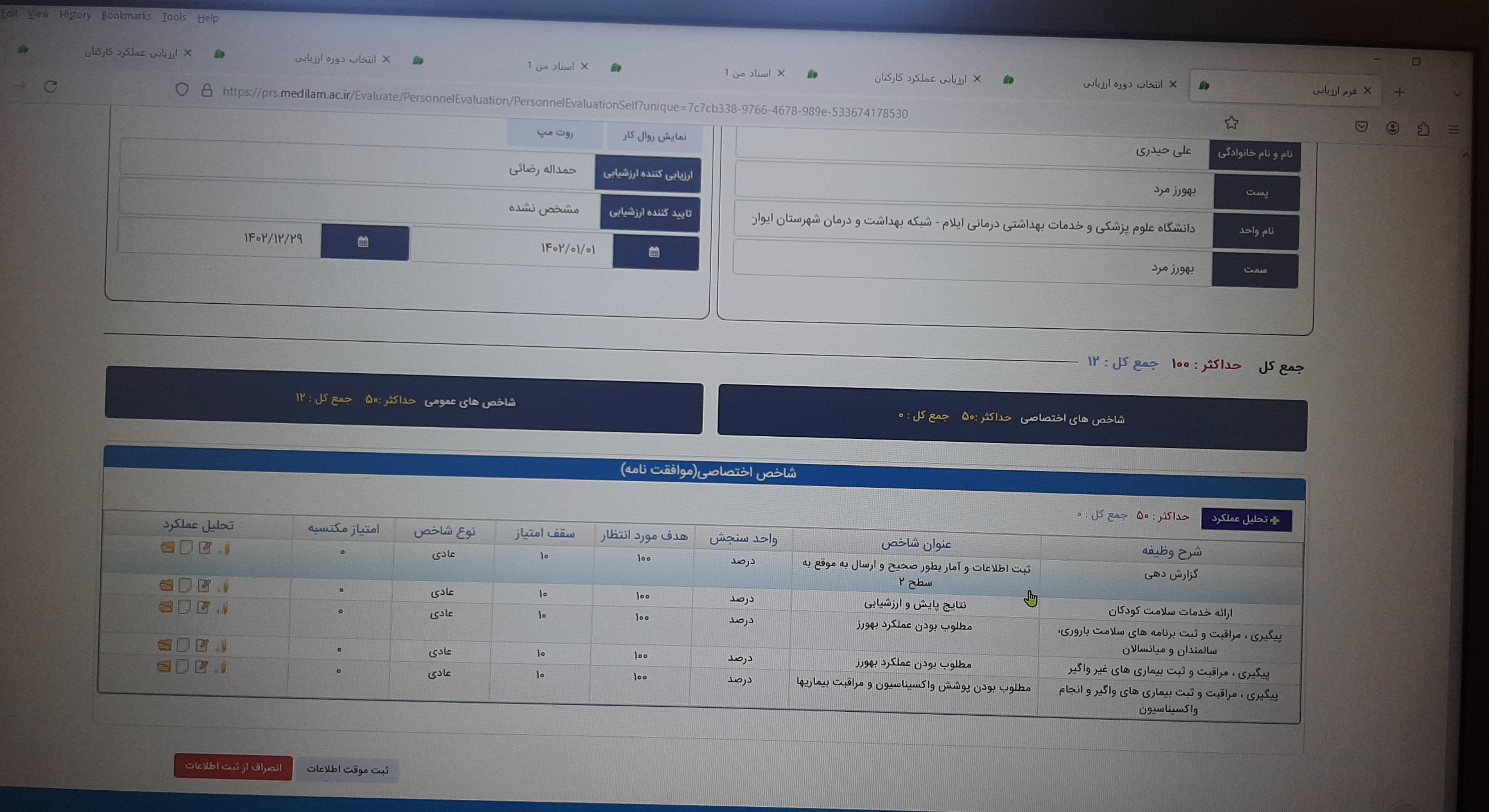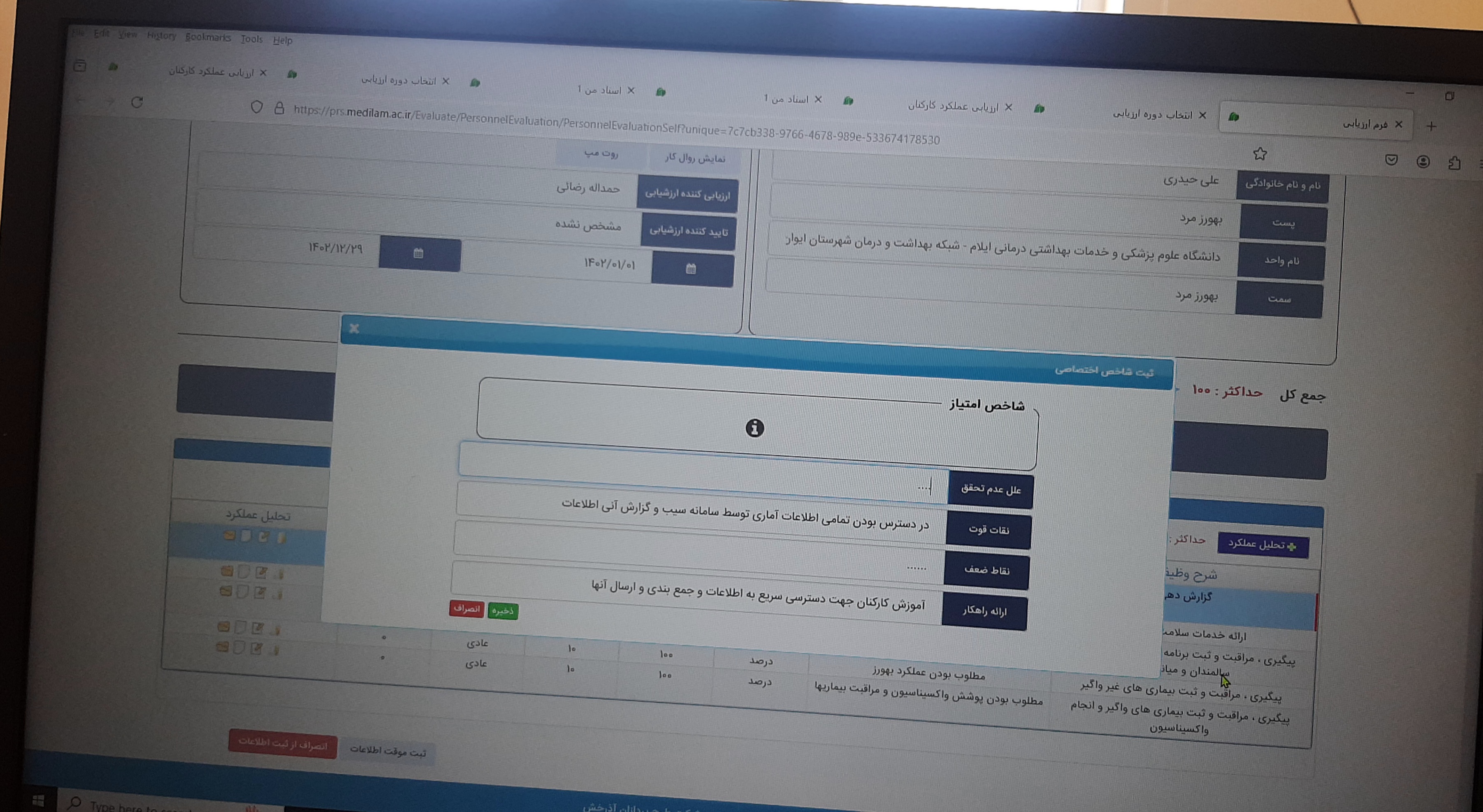 ۱_ ویرایش فرم ارزیابی _ارزیابی عملکرد کارکنان : که میتوان گفته های بالا را در همین قسمت نیز وارد و انجام داد .
