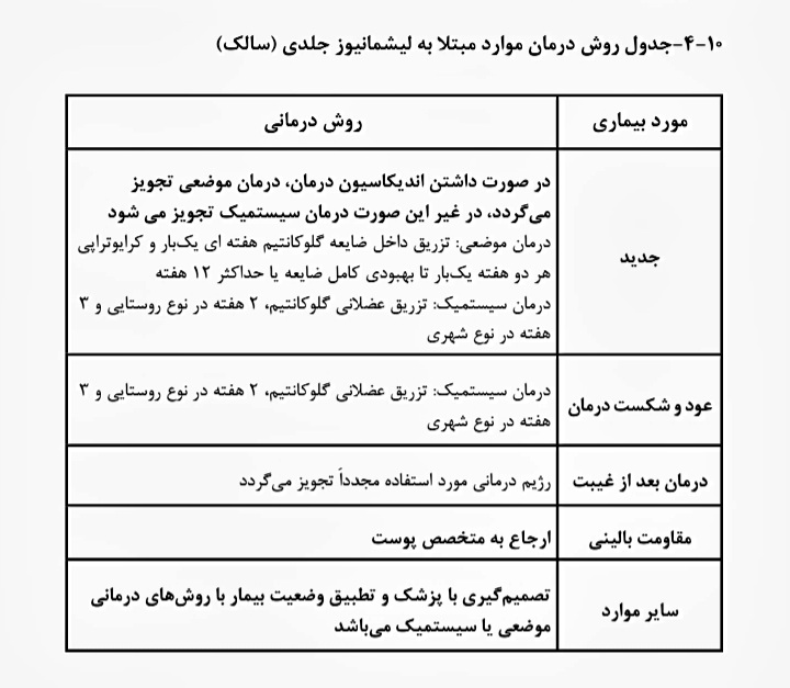 ➕ لیشمانیوز جلدی روستایی: کمتر از چهار ماه.