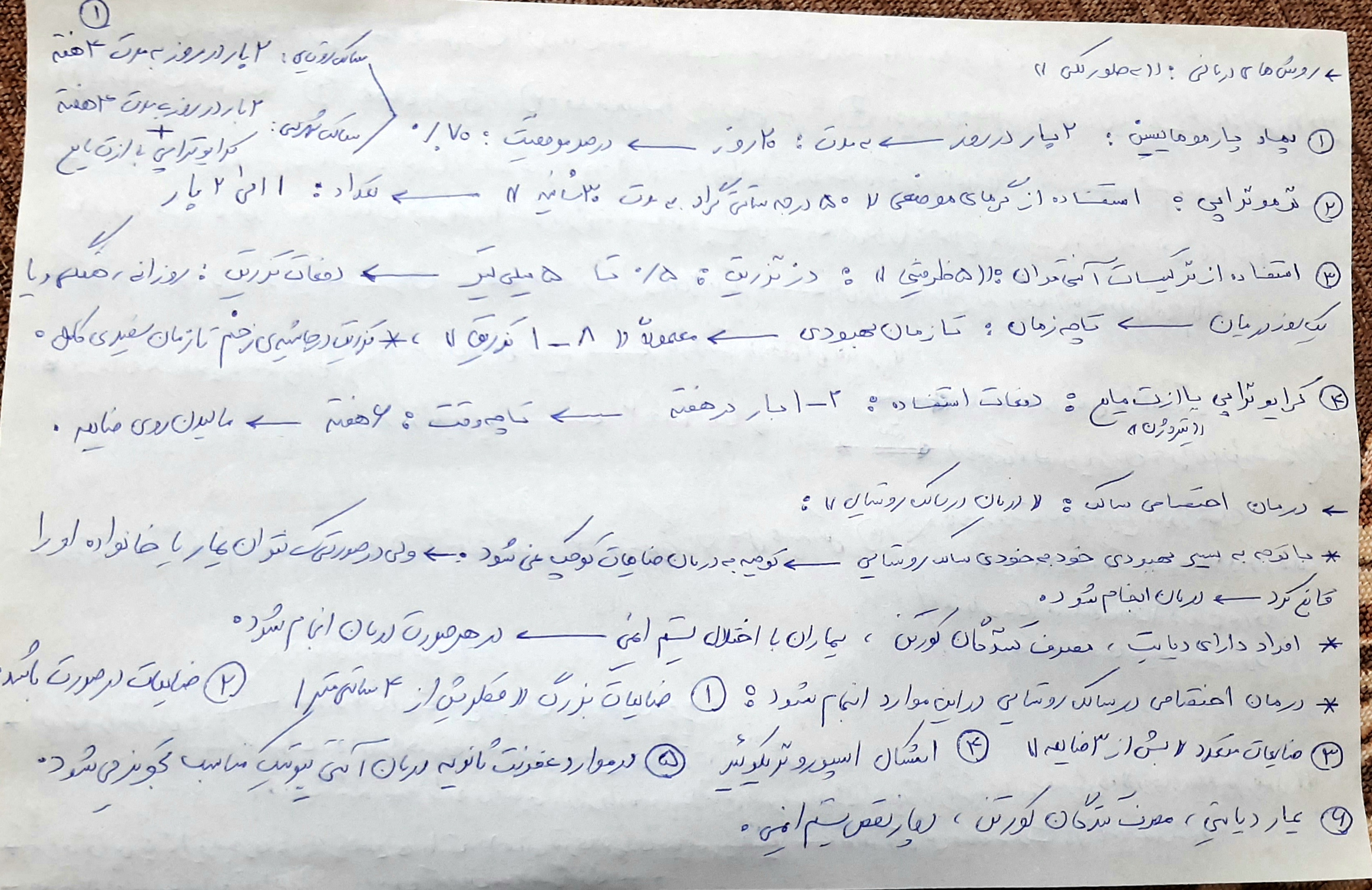 ➕در صورت درمان موضعی: تزریق ترکیبات آنتیموان ۵ ظرفیتی هفته ای یکبار.