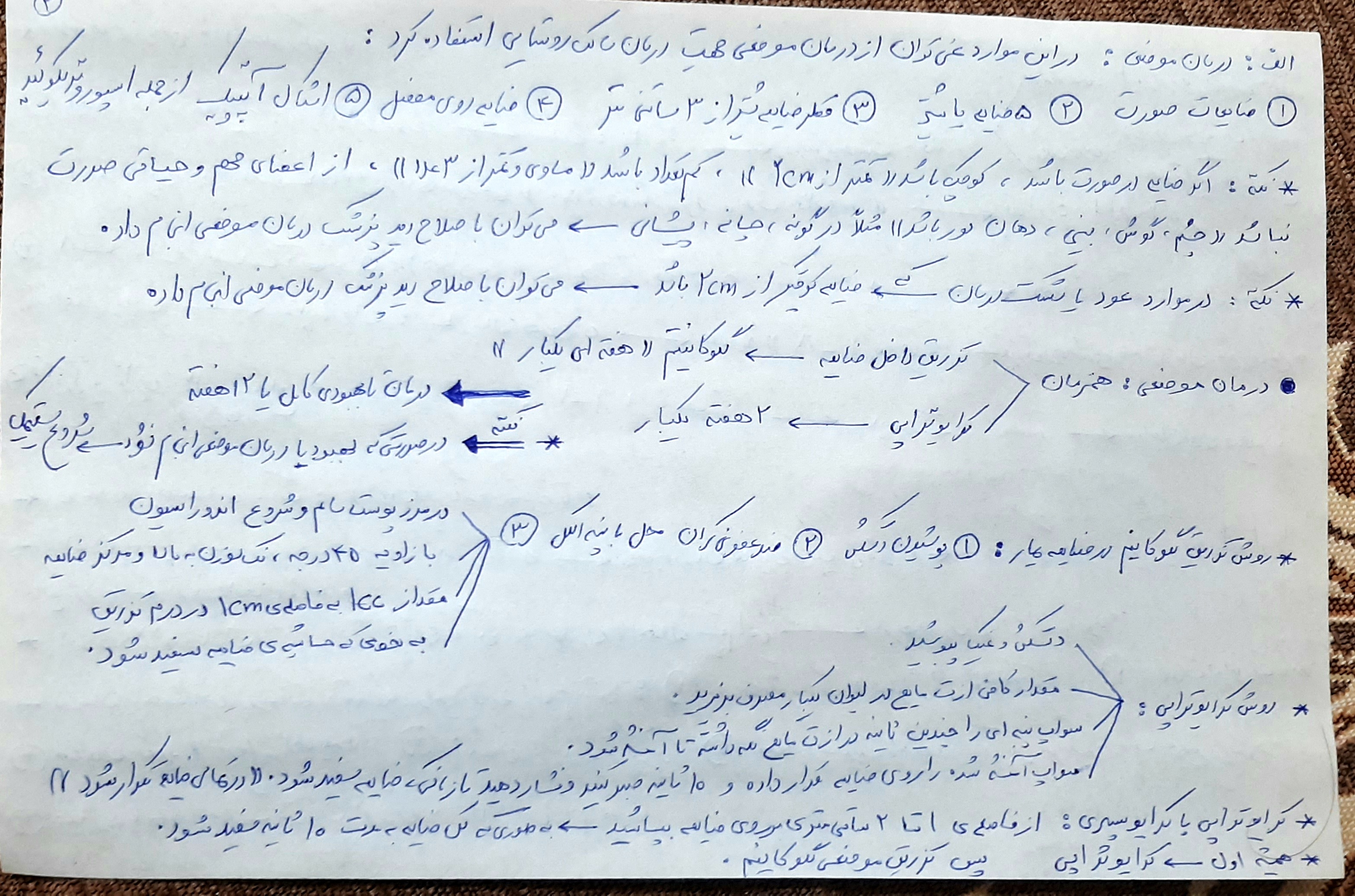 ➕ مواردی که تعداد ضایعات بیش از ۵ عدد و ضایعه روی( مفصل، نزدیک چشم ، بینی و لب و اندازه آن بزرگتر از ۳ سانتیمتر باشد و احتمال عود و شکست درمان باشد)درمان به شکل سیستمیک انجام میشود.